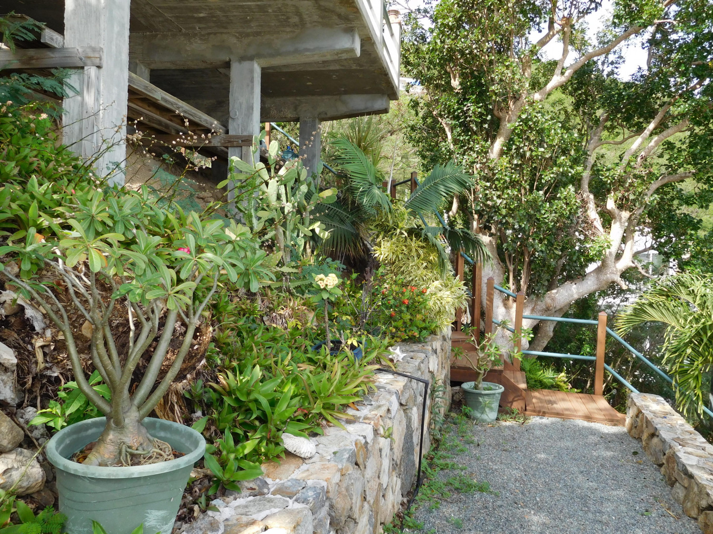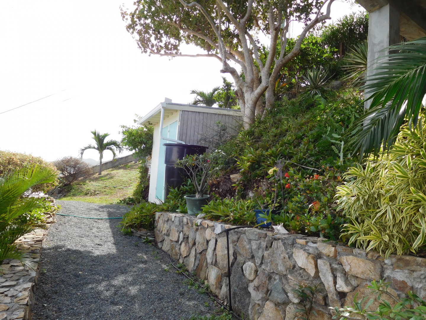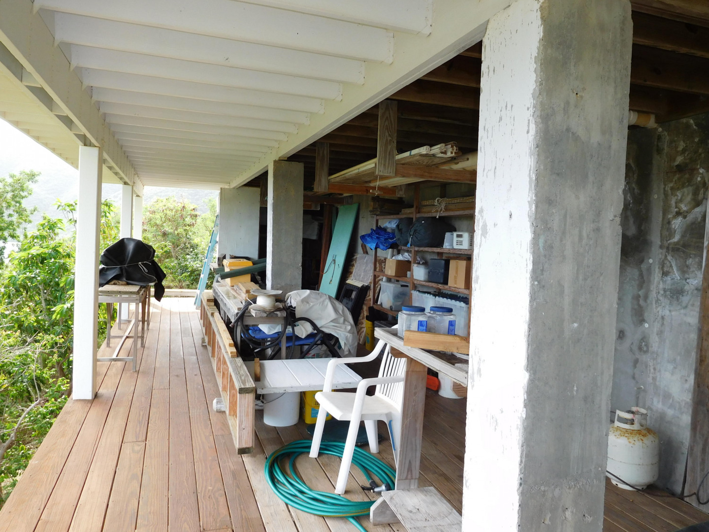Exceptional craftsmanship with stunning water views! ''Coral Haven'' is a well-built (above & beyond code) frame guest house on a solid concrete foundation with two studio apartments situated on the main & lower levels located in the Seagrape Hill subdivision in Coral Bay with dual bay views over Hurricane Hole, Coral Bay harbor and beyond. Guest house completed in 2007 and main house started with 22,000 gallon concrete cistern in place with a workshop and expired plans for a 2 bed x 2 bath main house. Many options for new owner with much of the hard work completed! MUST SEE to fully appreciate the value, quality and Owner's pride int this exceptional property. Please see supplement for more information."Coral Haven" Guest House The guest house was completed in 2007 & issued a certificate of occupancy with a separate meter Hybrid construction with a 5,000 gallon concrete cistern foundation and frame construction similar to post & beam with 3x6 studs 24" on center with timber roof Roof is well built with 3x8 rafters; 3x10 hips; 3x12 ridge with 2 collar ties; Cyprus decking – purlins bolted – Rigid 1.5" insulation with ¾" plywood roof deck – elastomeric coating with water collection internalized Maxi-vue windows – most with redwood louvers Doors & windows all have full protection Caribbean style shutters Covered tile outside deck 30'x8' and 16'x6' Substantial 2 car concrete parking pad with gated stairway to guest house. Plenty of storage area below the parking pad and could be enclosed for dry storage. Garden shed has ample room for supplies, paint, etc. with a plastic 1,000 gallon water container for watering landscaping. The yard has lovely stone terracing and mature landscaping; a true gardener's delight with plenty of room to add your own personal touch! The guest house offers options for use. An owner can occupy upper and lower level; owner can occupy one apartment and long term or short term rent the other; long or short term rent both. Main house The main house has expired plans for a 2 bed x 2 bath house. Plans are available for review upon request. New owner can use existing plans or redesign. Current Owner was considering making main house 1 large bedroom x 1.5 bathrooms. Again, many options with this property for a new owner.