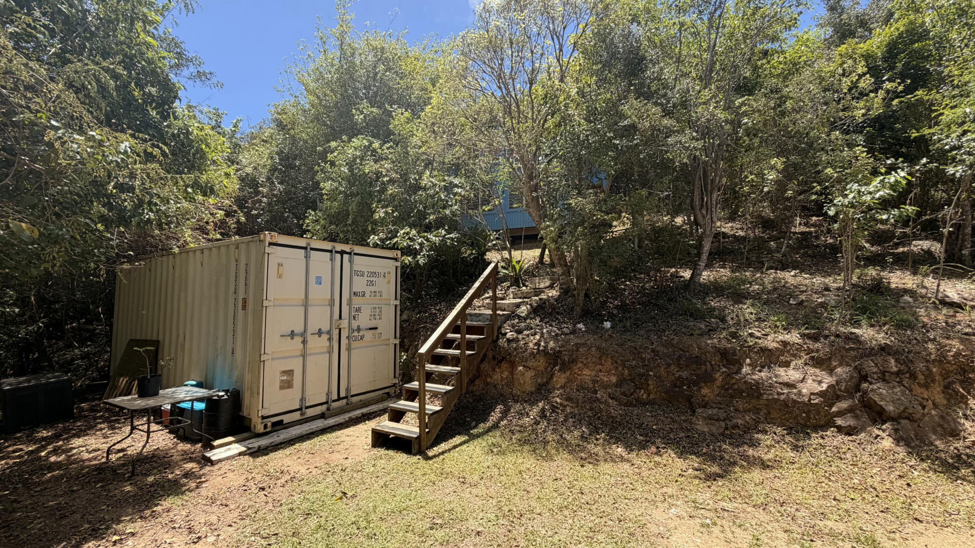 Charming Carolina Cottage with Expansion Potential! Nestled in the lush greenery of Carolina, this unique one-bedroom, one- bathroom home offers island living with room to grow. The two-level layout provides functionality and charm: the lower floor includes laundry and storage space, while the upper floor features an open living area, kitchen, bedroom, and a loft that can serve as a guest sleeping area, office, or creative nook. Enjoy serene valley views from the property's wide driveway, which accommodates up to six vehicles, perfect for entertaining or future expansion. A 20-foot storage container is included on site. This property is a versatile investment for both homeowners and builders alike.