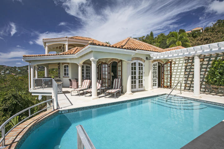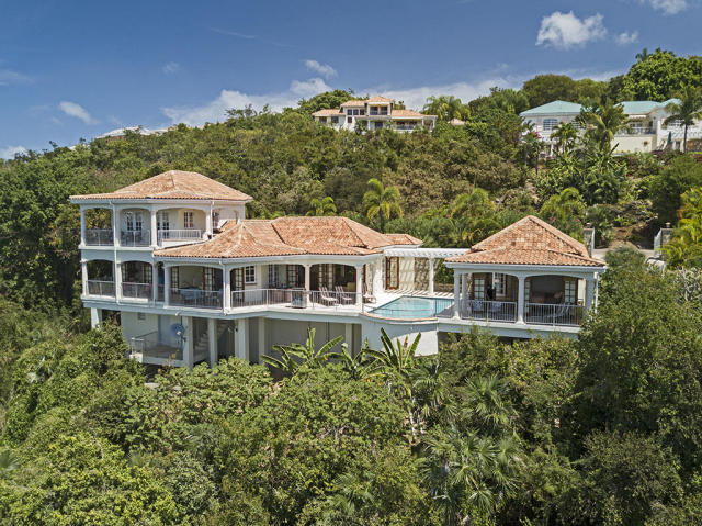 “Vista Cielo”, Spanish for “View of the Heavens” features fabulous panoramic vistas overlooking the Caribbean Sea with St. Croix visible to the South, St. Thomas to the West and gorgeous sunsets daily. Enjoy the sophisticated Caribbean architecture, the casual elegance of three master ensuites, an amazing cook’s kitchen, and the spacious patios. Offered at 2.849M, in the gated community of Virgin Grand Estates. Contact Jane Kelly 941.544.5855